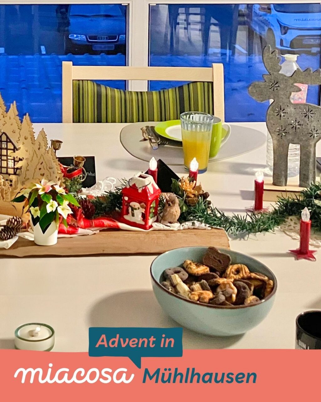 In unserer Wohngemeinschaft ist es gerade richtig gemütlich: überall gibt es etwas zu entdecken – kleine Wichtel, gefüllte Socken, Rentiere und Plätzchen-Schalen.